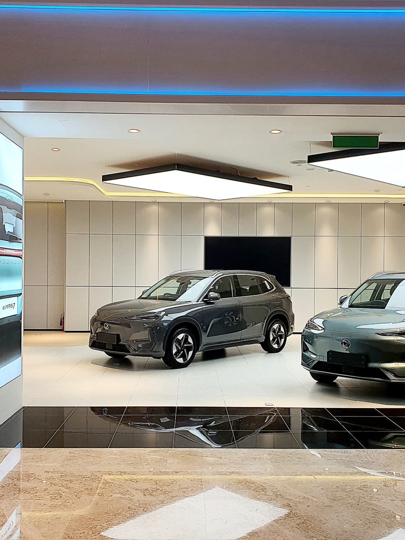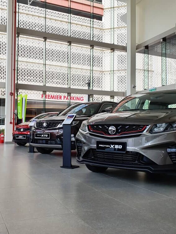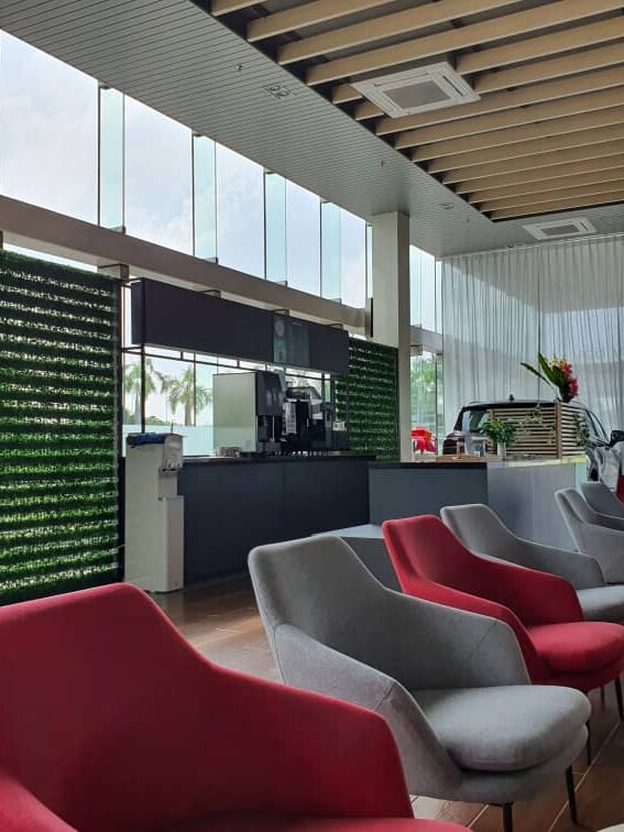 Unique architectural design of a building creates a feel of the future-forward environment. Spacious car showroom and clients lounge in the middle. Service & Maintenance on weekends is available, which is the main accent of Proton 3S Platinum Flagship.